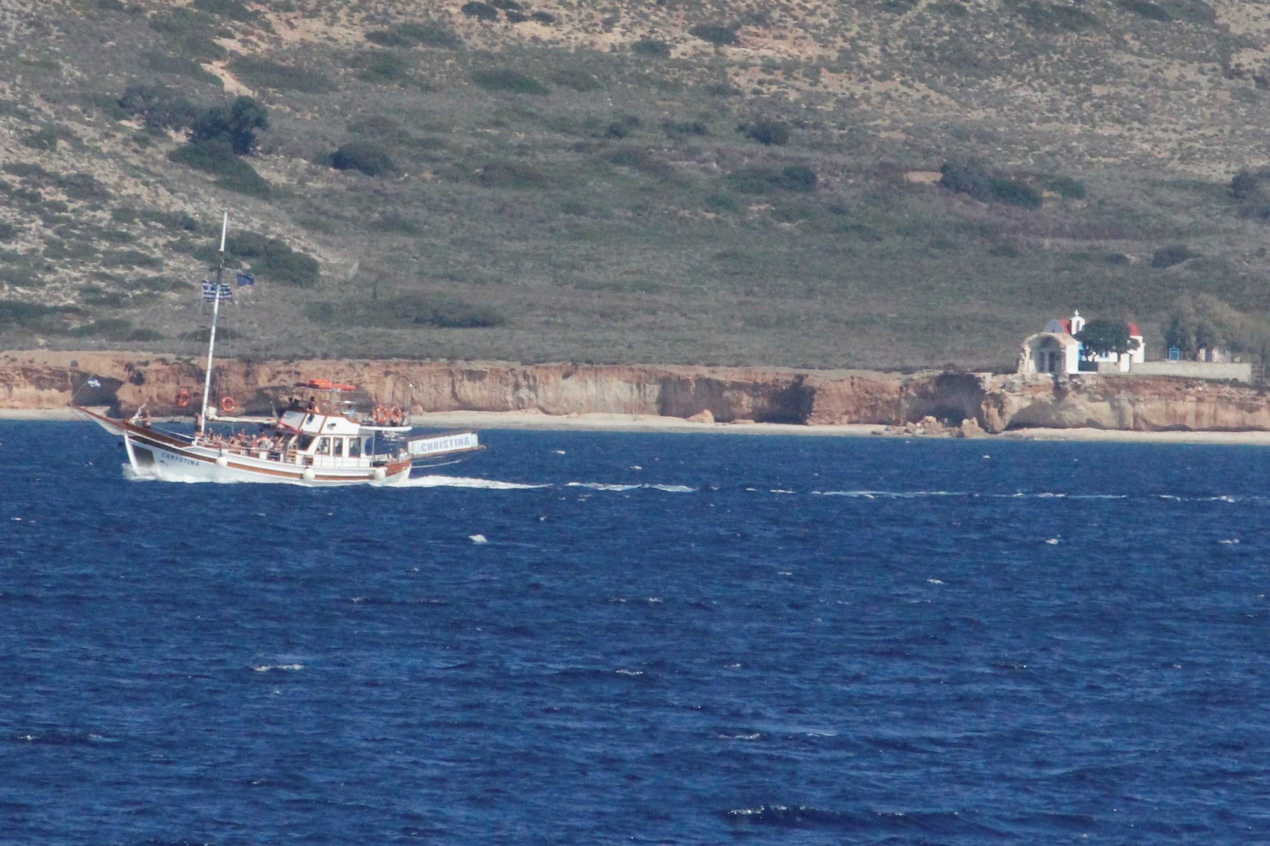 The journey was good, great weather. One thing I had kind of forgetting about until these recent boat trips is that I can sometimes get a little queasy on the water!! Usually if it’s really choppy or when you’re at a standstill and the boat does that lulling movement. I got a little funny on the boat trip to Tilos, but this time I sat outside and just took it all in.