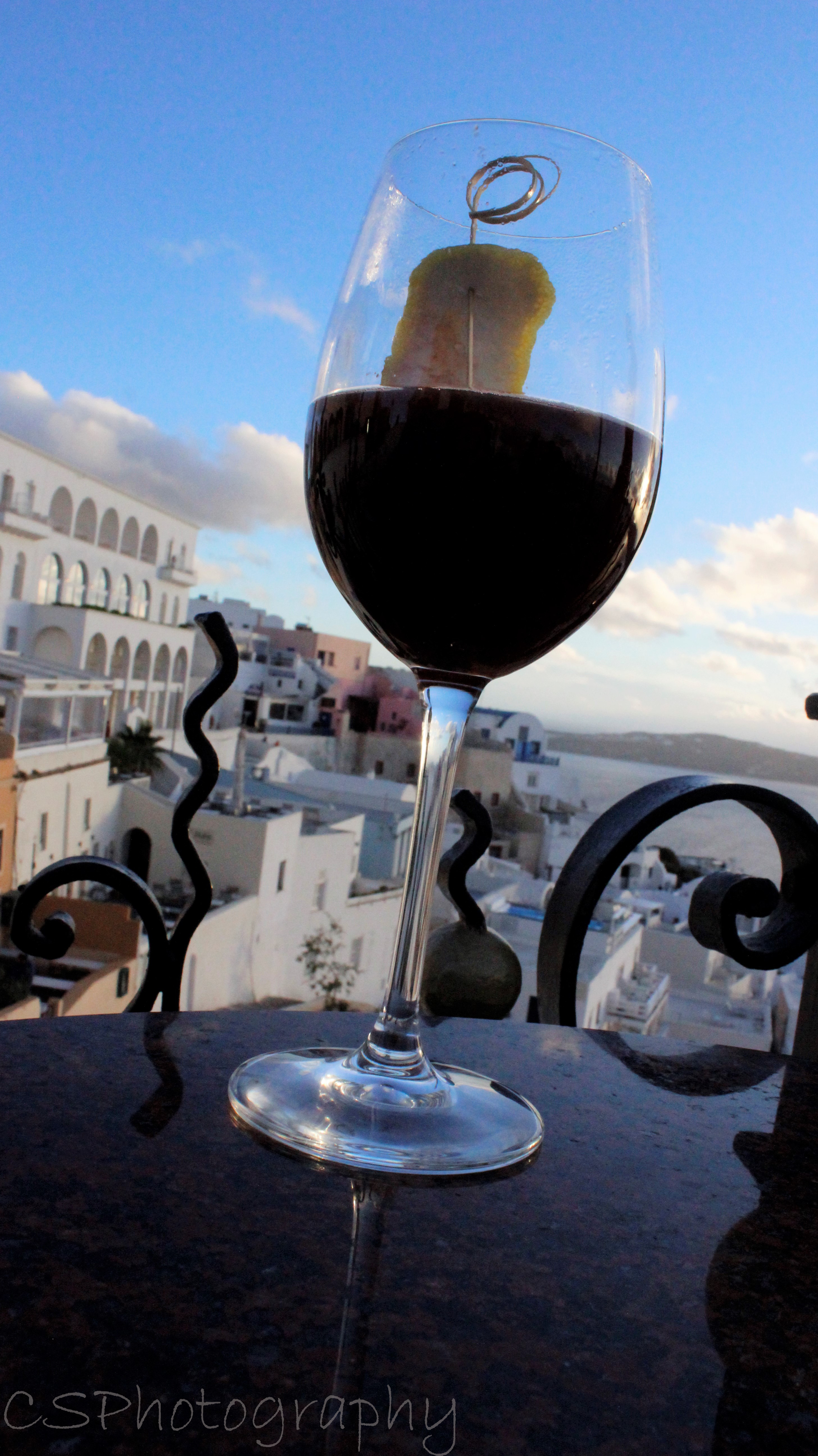 Yesterday wasn’t as bad, although it was still raining on and off, so I did some more photos, caught up with homework notes then ventured out for food in the afternoon. I had a cheaper time of it as I came down to the square, where I’m sat now. €3 Gyros for lunch, yummo! I think I’m becoming addicted to the best Greek snack ever! I actually went back to the hotel to get changed as it was so cold. I put my hoody and Uggs on believe it or not (yes I packed them as I knew it would be cold weather in October / November and I thought I’d still be here!) I went back out for the sunset and had another treat – a seat at the cliff top bar and ordered a hot Mulled Wine Cocktail, €11!!!!!!!!!!!! It was lovely. The view was great, although me and the other customers were sat all rugged up and almost getting blown away with the wind. The sunset wasn’t great, it’s been really cloudy and wet, but it was nice to be there for it. I’m hoping I’ll get a proper one before I leave.