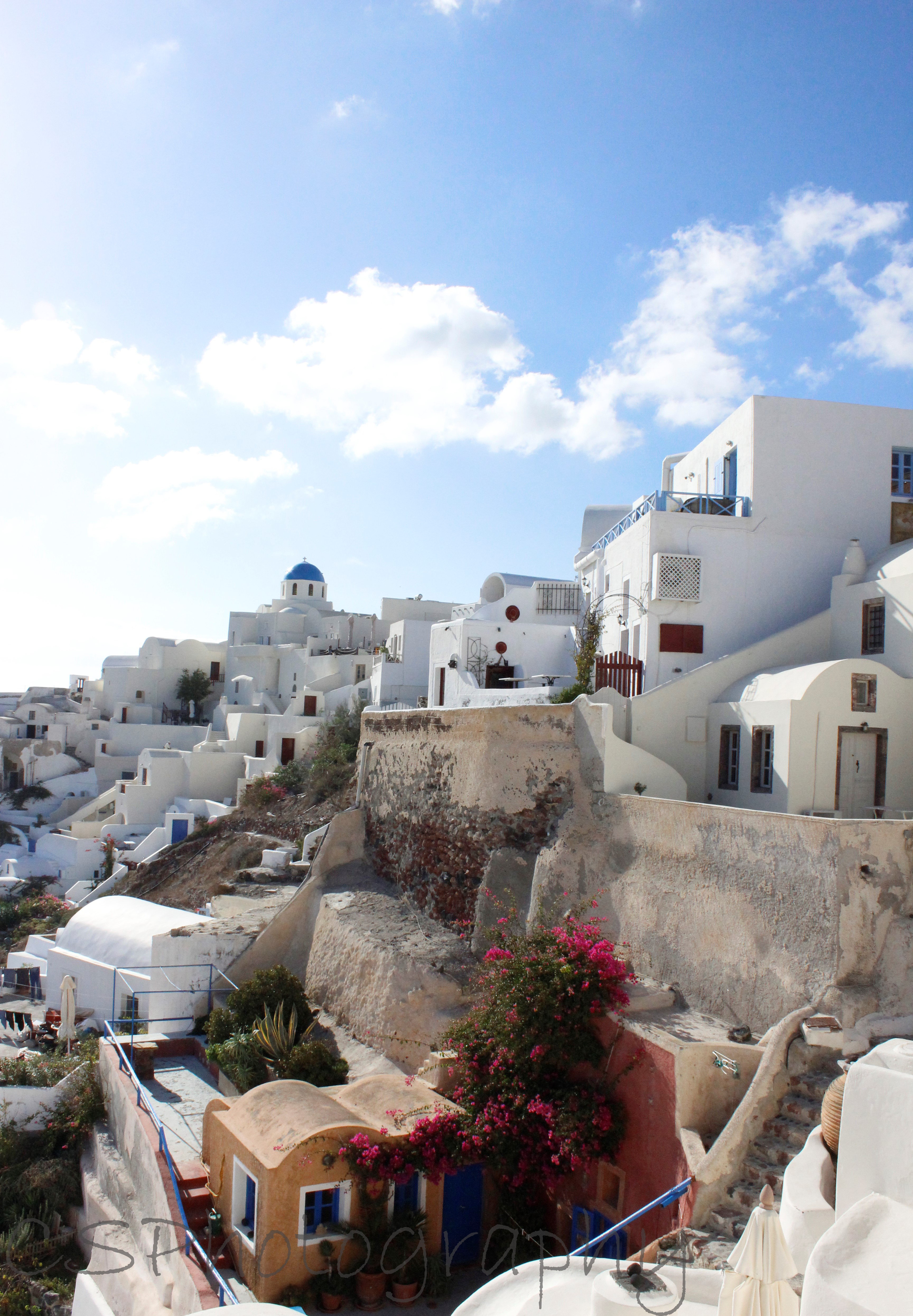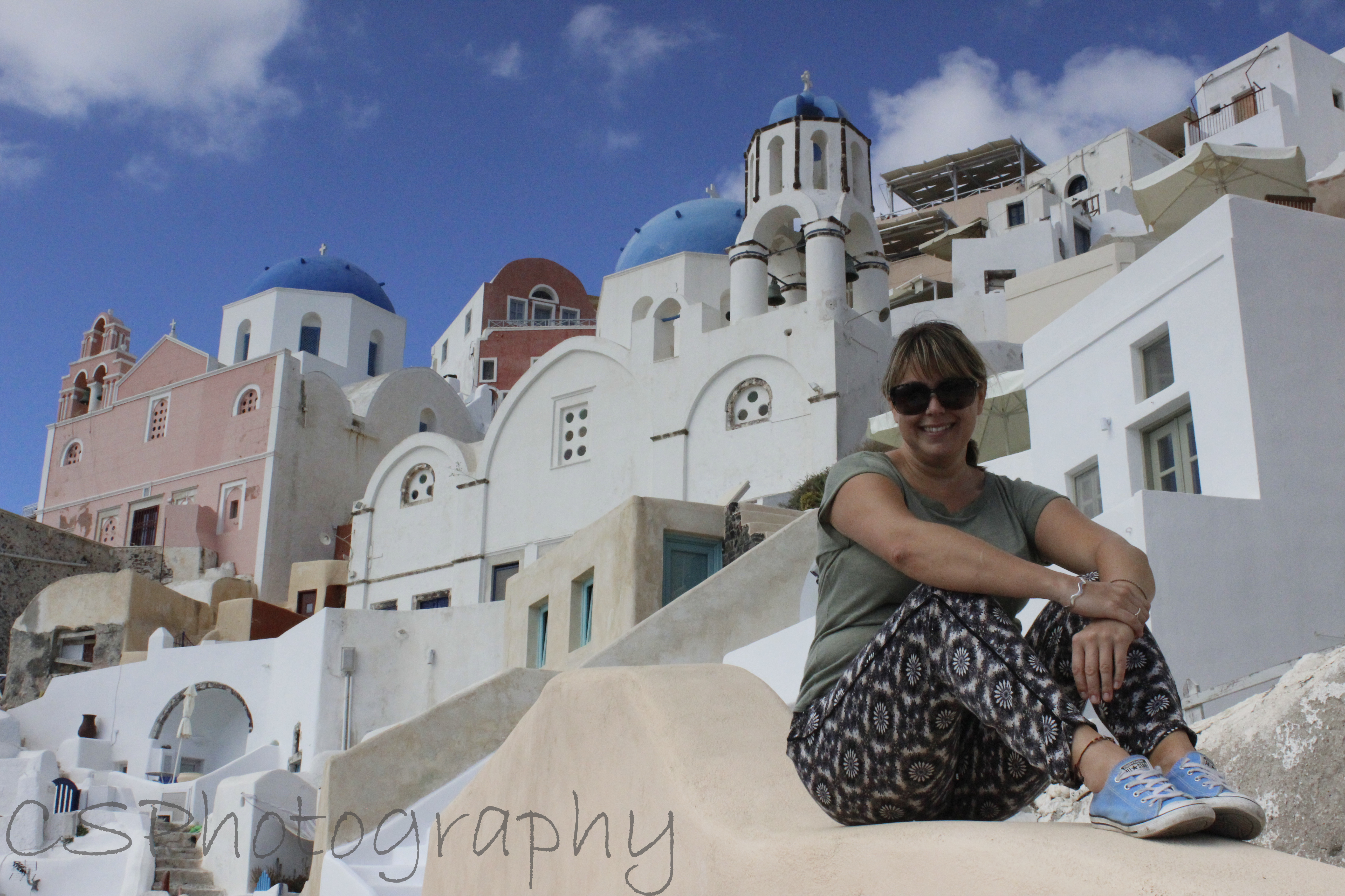 I’m sat in a Skala restaurant, have just had lunch whilst looking out at the cliff front in Ia (Oia) which is the famous town for the Santorini Sunset. Fira, where I am staying is also famous for it’s setting. I have walked along the top, down hundreds of steps, and back up, twisted and turned down every alley and laneway I could see and have happily snapped away and shopped as I have made my way around the town. It is stunning. I am now waiting for the sunset as would love to see it in person instead of from a postcard! It has been gorgeous weather today with the sun shining bright, although it is sill a bit windy and cool. I am hoping the sunset will be a good one as the weather has been really cloudy since I’ve been on the Island, and we haven’t really had a proper sunset yet. Stay tuned…..